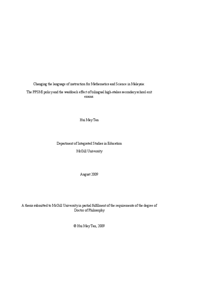 Changing The Language Of Instruction For Mathematics And Science In Malaysia The Ppsmi Policy And The Washback Effect Of Bilingual Highstakes Secondary School Exit Exams Test Assessment Survey Methodology