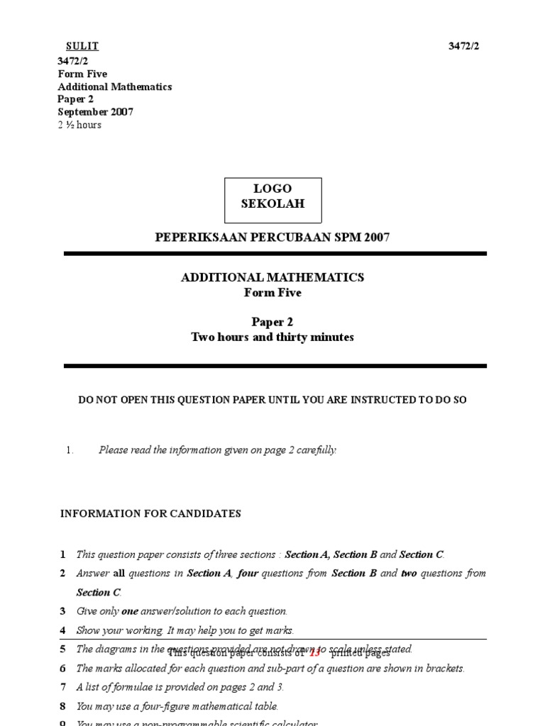 Soalan Ramalan Mathematics Pmr 2009 Paper 1 Pdf Document