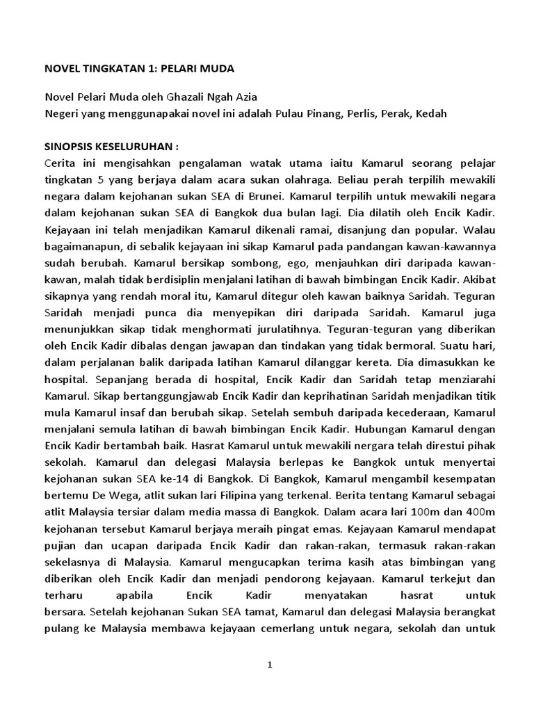 Novel Tingkatan 1 Pelari Muda Kupasan Novel Laman Komsas Antologi Dan Novel Terkini