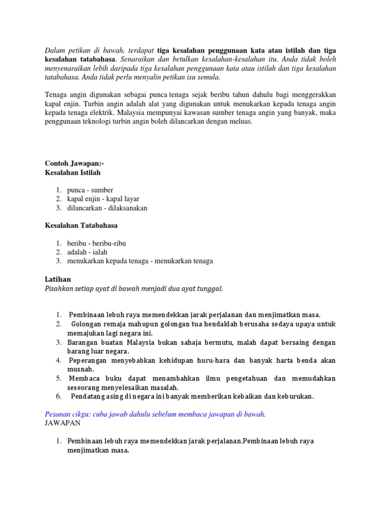 Kesalahan Tatabahasa Senaraikan Dan Betulkan Kesalahan Kesalahan Itu Anda Tidak Boleh