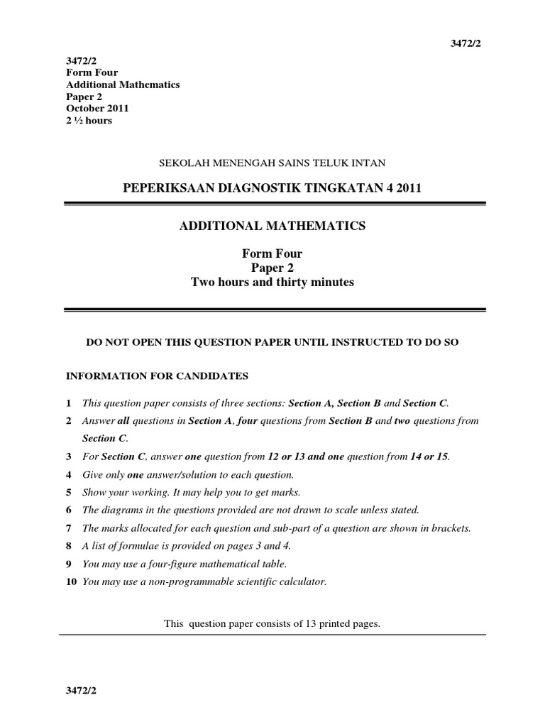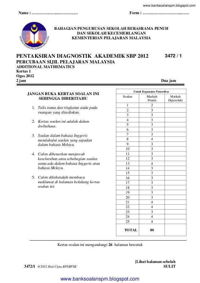 Soalan Matematik Tingkatan 4 Sbp Viral Blog P