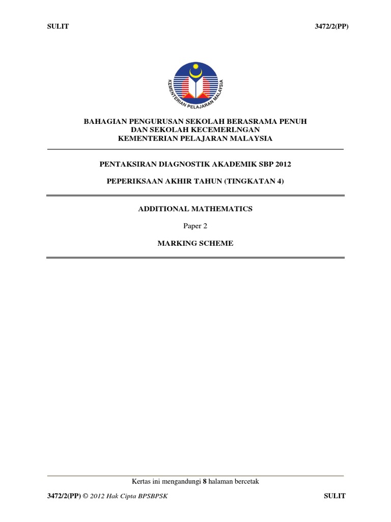 Jawapan Sbp Akhir Tahun Add Maths Tingkatan 4 2010
