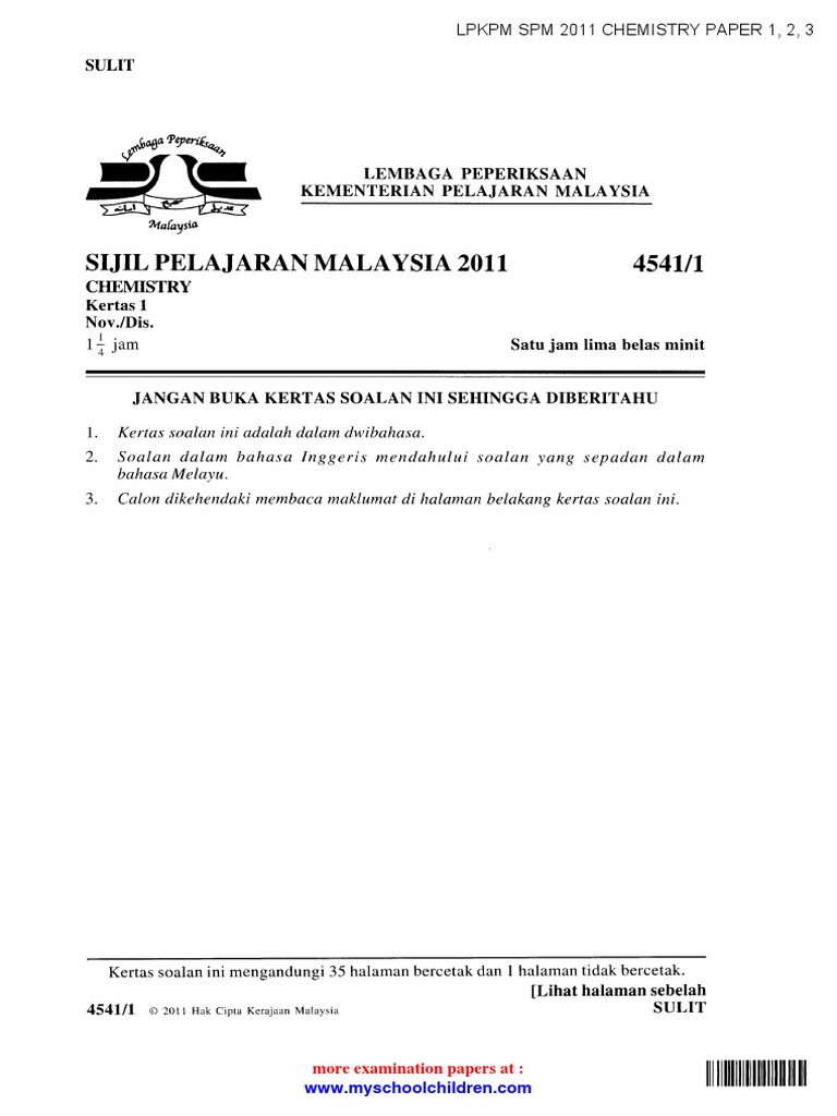Lpkpm Spm 2011 Chemistry Paper 1 2 3 Chlorine Potassium