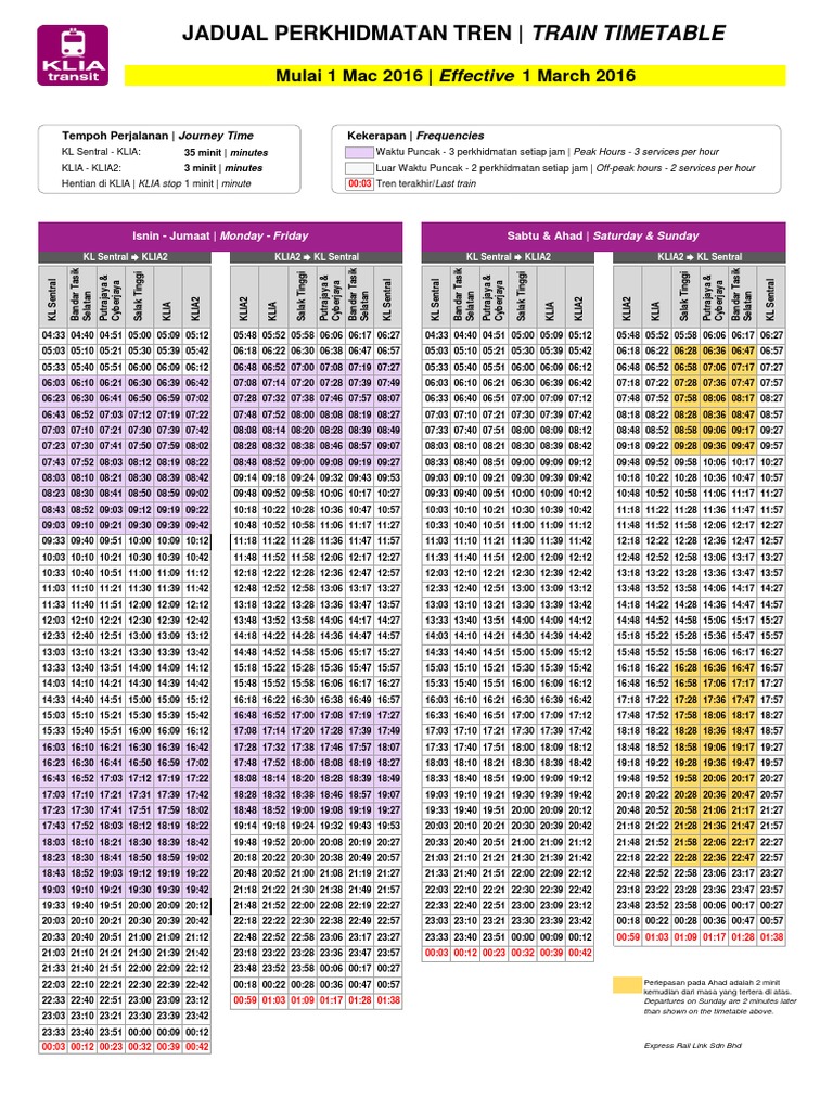 Klia Transit Schedule Pdf Passenger Rail Transport Public Transport