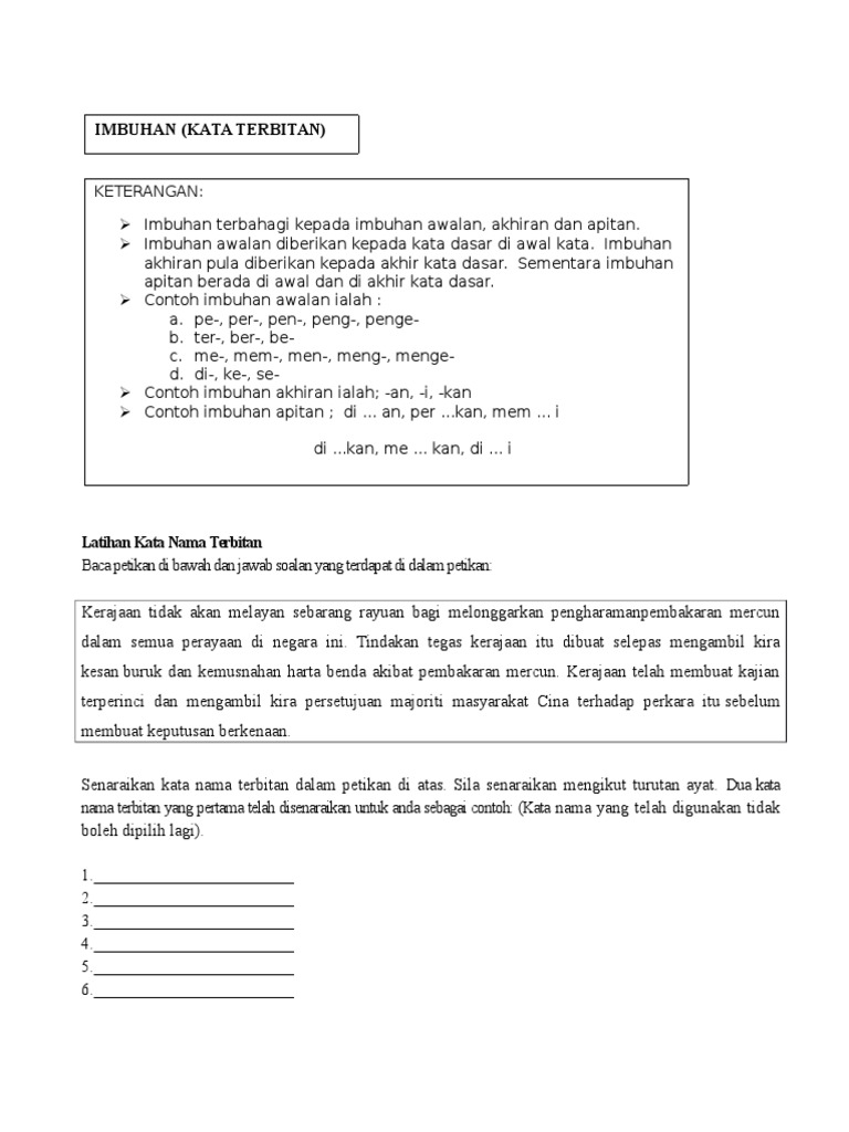 Latihan Dan Jawapan Kata Nama Terbitan Tingkatan 3