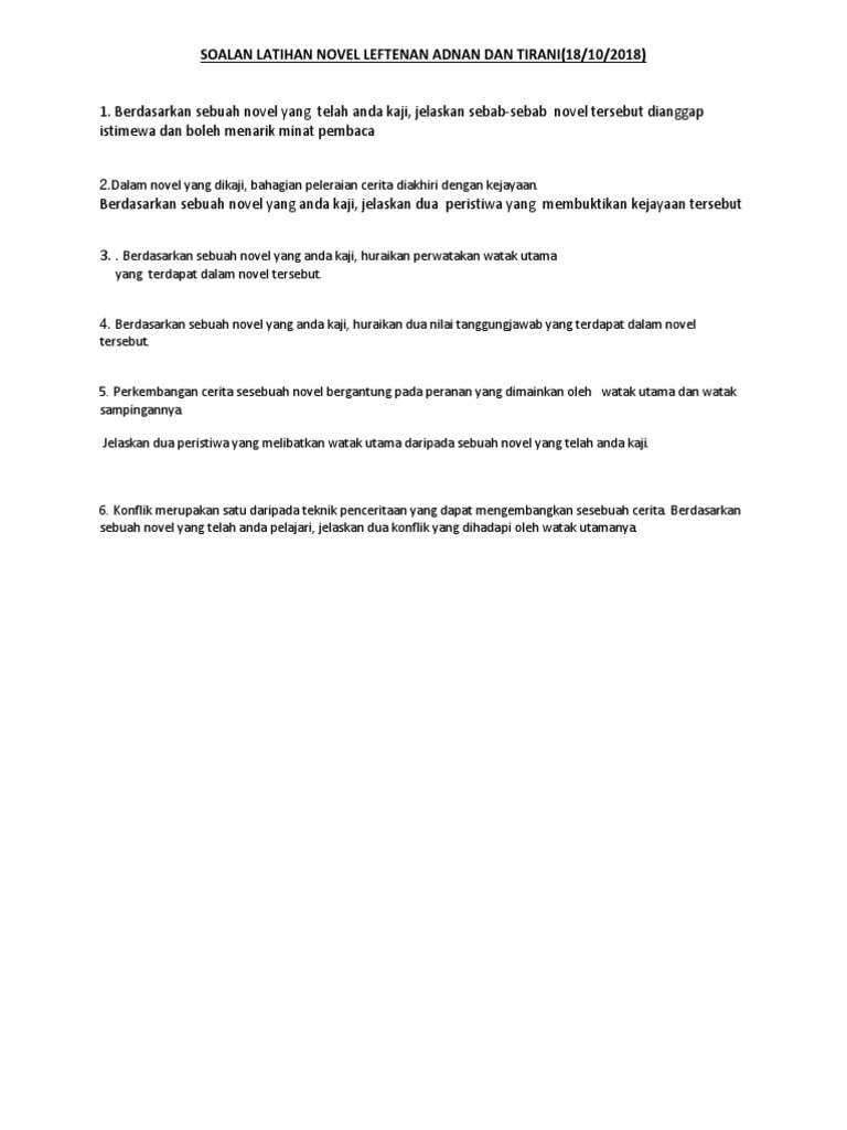 Soalan Latihan Novel Leftenan Adnan Dan Tirani