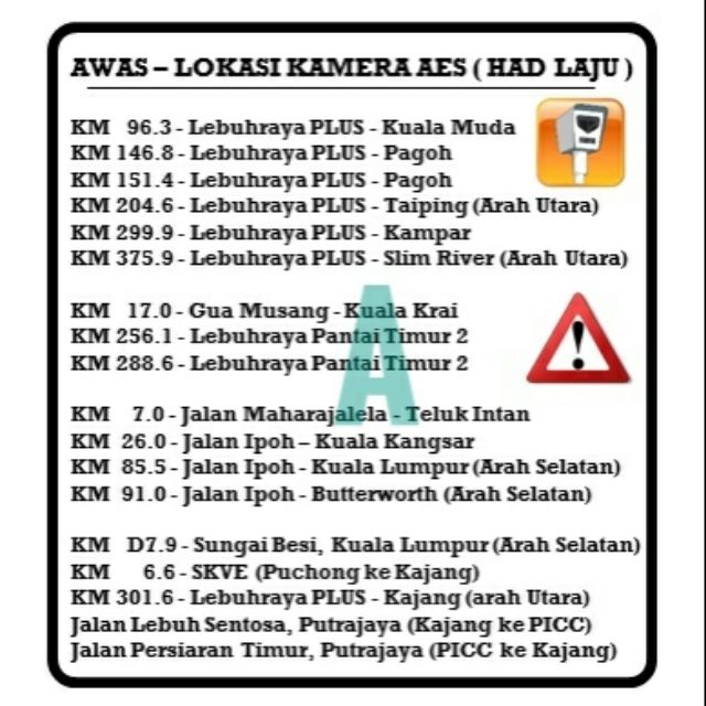 Lokasi Kamera Aes Awas Terkini Di Malaysia