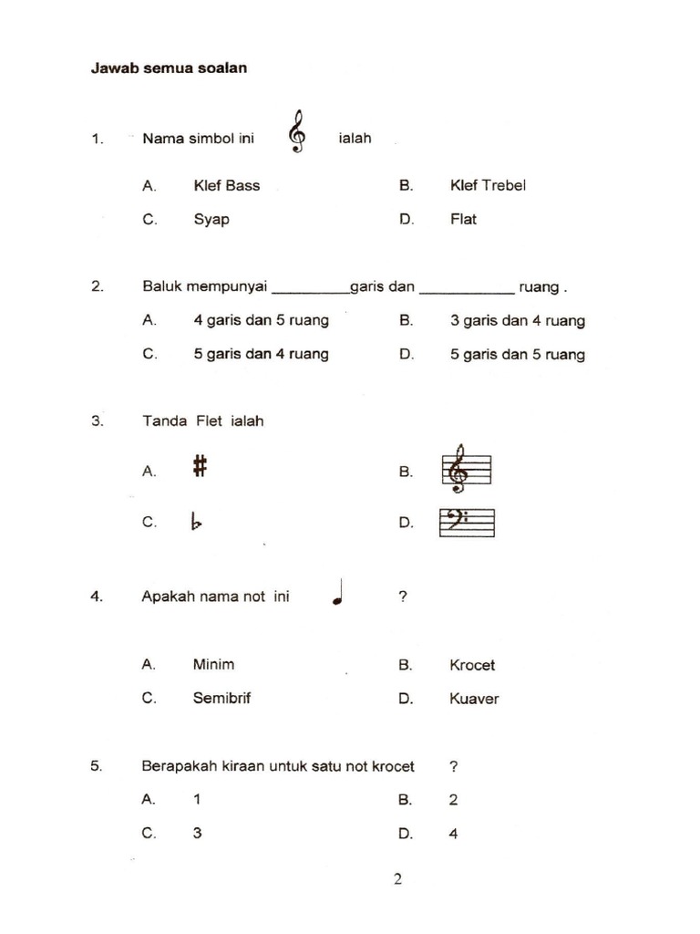 Peperiksaan Pertengahan Tahun Mei 2018 Pendidikan Muzik Tahun 5