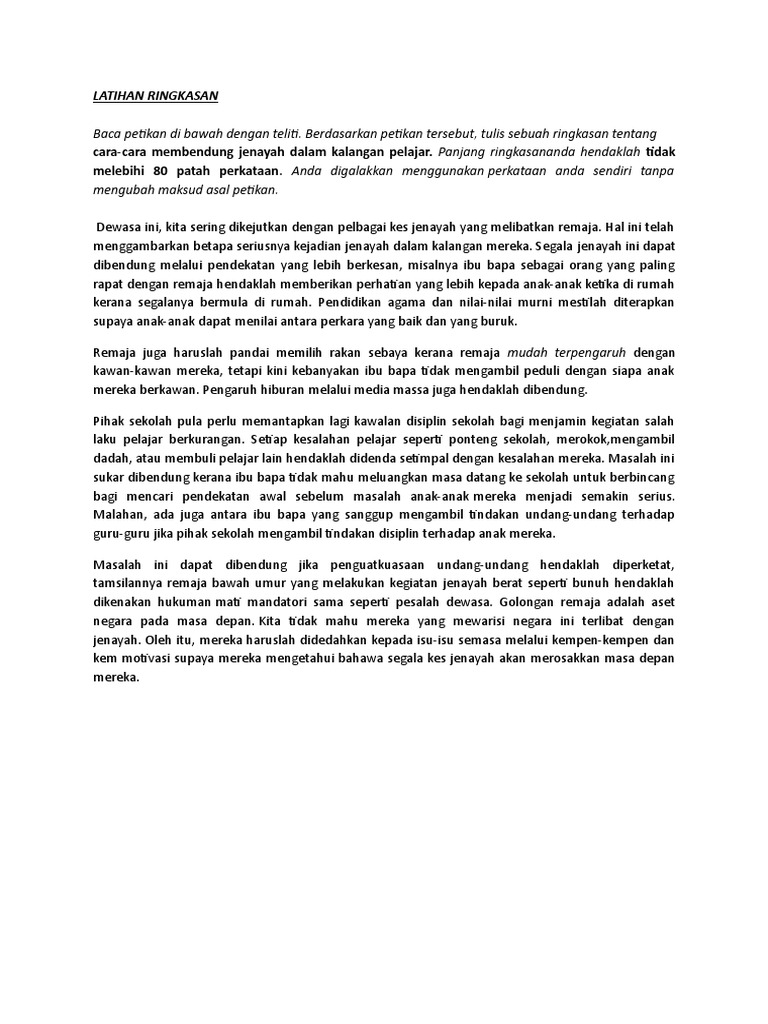 Contoh Soalan Ringkasan Karangan Tingkatan 1 Kecemasan E