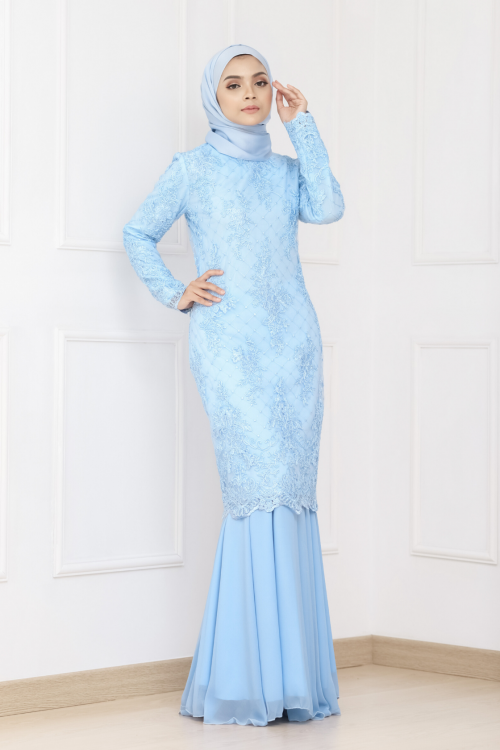 Baju Kurung Moden Raya 2020 Celine Lace Baby Blue Saeeda Collections