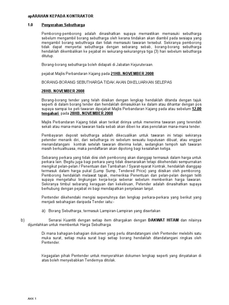 Spesifikasi Arahan Kepada Kontraktor