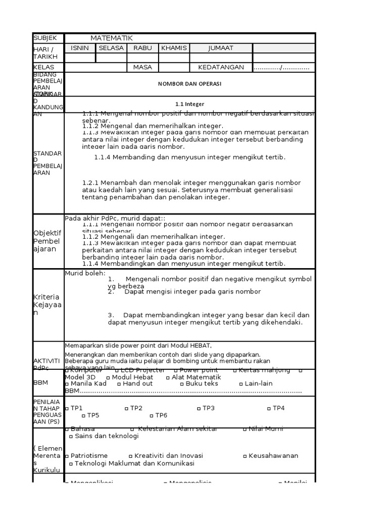 Contoh Rph Matematik Tingkatan 1 Xlsx Xlsx