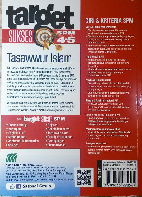 Buku Rujukan Target Pintar Spm Tasawwur Islam Tingkat 4 5 Sasbadi Shopee Malaysia