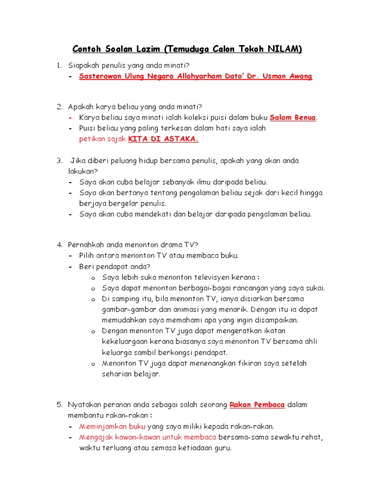 Contoh Soalan Temuduga Tokoh Nilam Kuora C