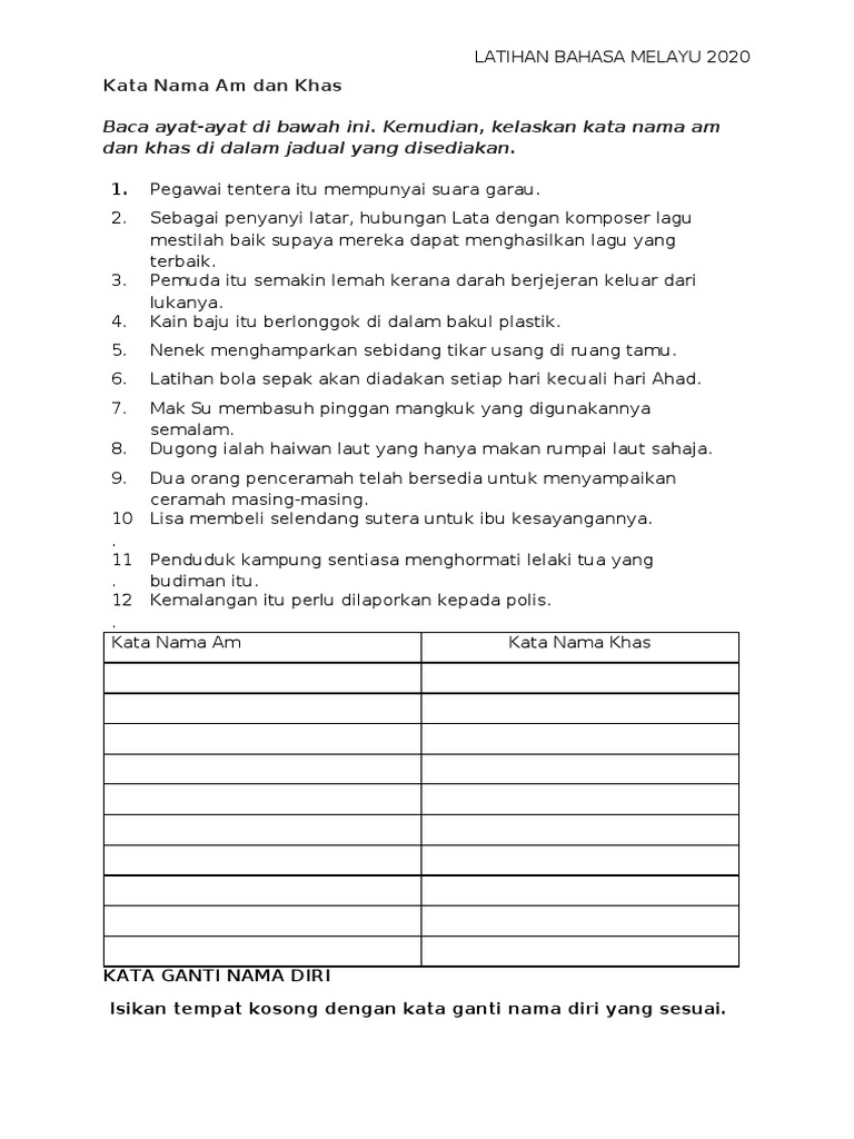 Contoh Soalan Kata Nama Am Dan Khas Docx Document